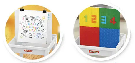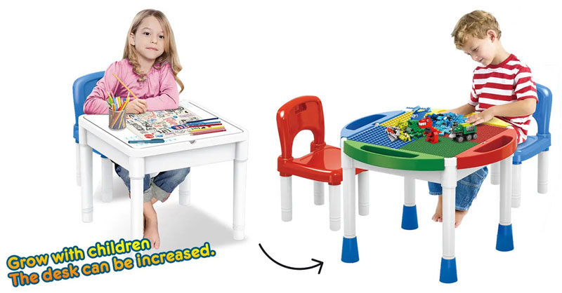 - Масата е с двулецев плот - едната страна е отлична основа за игри с конструктор (съвместимост с известни марки конструктори като Lego; конструкторът се предлага отделно), другата страна е гладка и е подходяща основа за писане и рисуване.