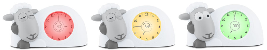 Нощната лампа сменя цвета си като светофар, за да обозначи нощ, ранна сутрин и подходящ момент за ставане.