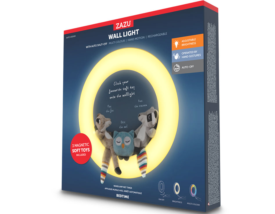 Тази уникална стенна лампа съчетава уютна атмосфера и забавление в едно. Включва 3 супер сладки магнитни приятелчета, които лесно се прикрепят към пръстена – изберете любимото си!