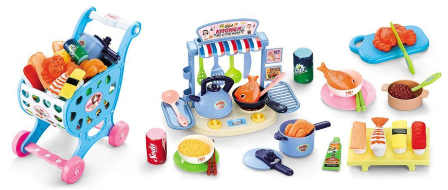 Страхотен комплект за ролеви игри - детска пазарска количка с множество аксесоари като съдове за готвене, храни и напитки! Игралният сет с цели 64 части дава множество възможности за игри - детето може да се забавлява като първо напазарува необходимите продукти, а след това приготви различни ястия за семейството и приятелите си.