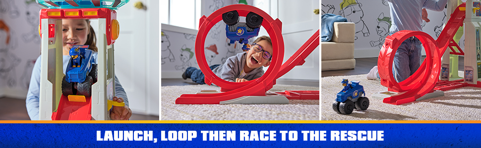 Super Loop HQ е специално проектирана, за да могат по нея да се спуснат повечето превозни средства PAW Patrol, така че съберете всичките си играчки PAW Patrol, поканете приятелите си и организирайте невероятно тематично парти!