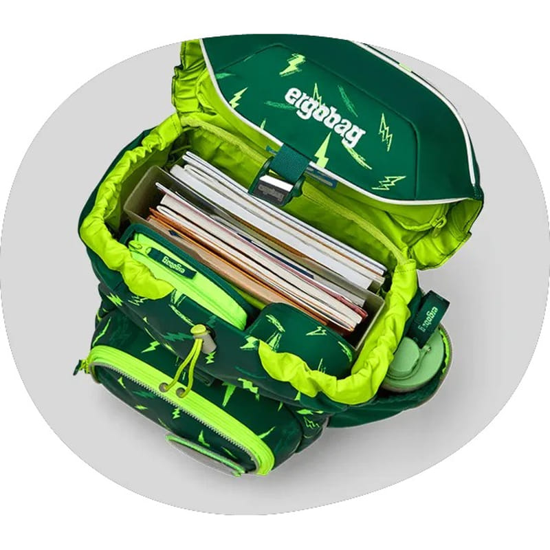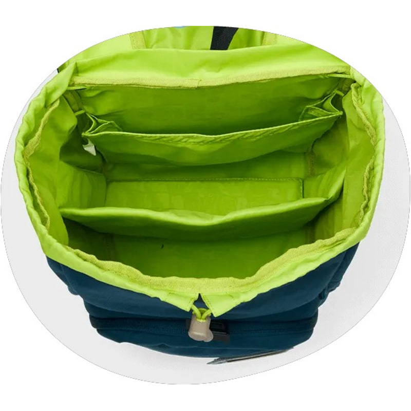 Раницата има ясно организирано основно отделение и джоб за книги, който е практичен за сигурно съхранение на учебници и поставяне на най-тежките предмети близо до гърба. Освен това има разделителен джоб, който може да се използва гъвкаво, както и мрежест джоб с халка за ключове – идеален за ценни вещи.