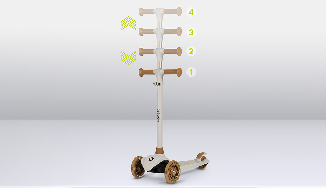 Баланс тротинетката Lionelo Jessy расте заедно с вашето дете и се адаптира към неговите нужди и удобството на родителите. Височината на кормилото може да се регулира на четири нива (65/70/75/80 см) за оптимално позициониране. Специалната система за закрепване на кормилото елиминира необходимостта от сложни настройки на подравняването на колелата и кормилото.