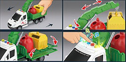Детският камион спомага за развиването на фината моторика и въображението на детето, докато то се забавлява. Подходящ за запознаване на детето с важността на опазването на околната среда и правилното разделно събиране на отпадъците.