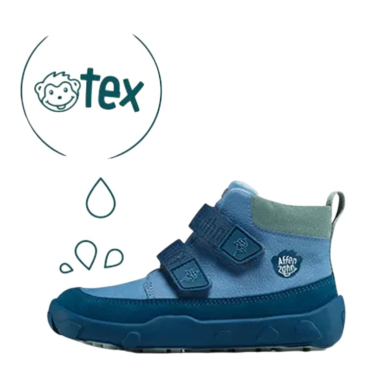 Благодарение на специалната мембрана AffenTex, която не пропуска влага в обувките. Така краката остават сухи и се намалява изпотяването – дори след многобройни скокове в локви!