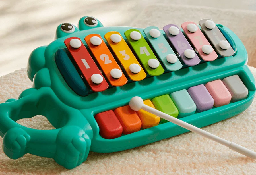 Детски ксилофон с форма на крокодилче – забавен и образователен музикален инструмент, който ще развие слуха, ритъма и креативността на вашето дете.