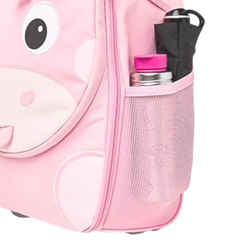 Когато детските ръчички имат нужда от почивка от куфара, родителите могат да поемат: презрамката се прикрепя бързо и позволява удобно носене на детския куфар през рамо.