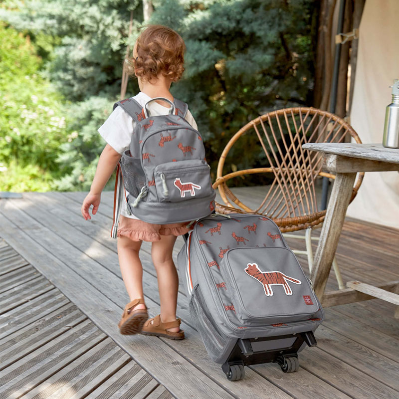 Около света за 80 дни? Веселият тигър от колекцията Safari краси детския куфар на LÄSSIG и придружава децата, когато тръгват към първите си вълнуващи приключения.