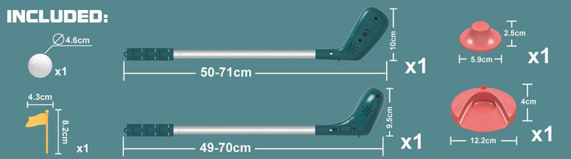 Детски мини голф, който ще зарадва всеки малък спортист! При замахване със стика той започва да свети и свири за още по-забавни и вълнуващи игри.