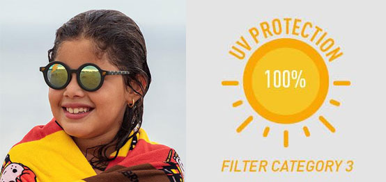 Отговарят на стандарт EN ISO 12312-1:2013. Осигуряват 100% защита от UV лъчи и вредите от слънцето (UV 400).