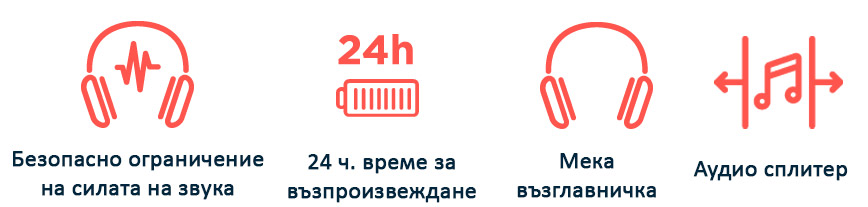 До 24 часа възпроизвеждане с едно зареждане. Включва 3,5 mm аудио кабел за използване с устройства, които не поддържат Bluetooth.