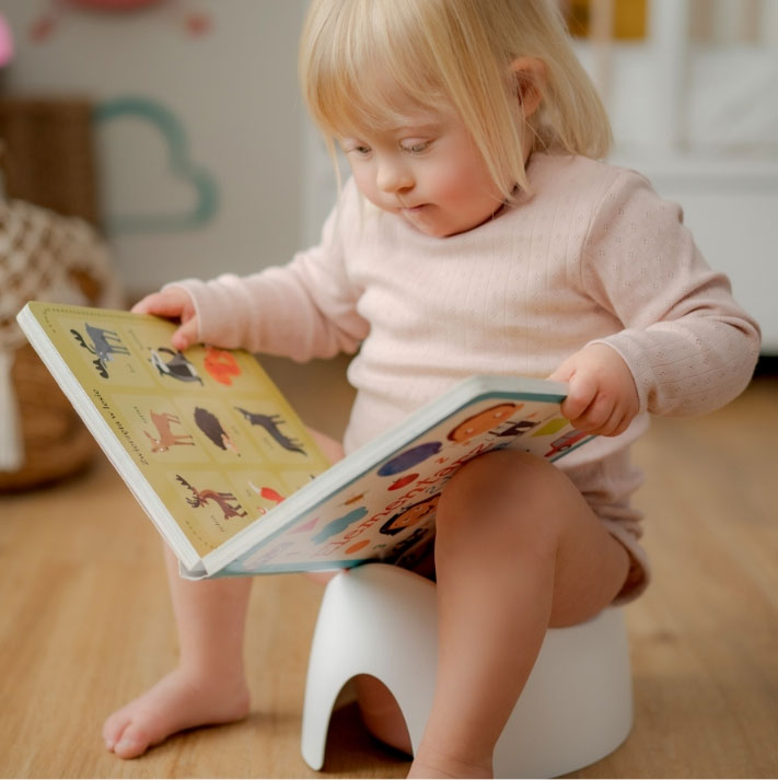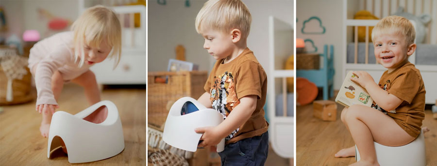 гърнето. Благодарение на иновативната форма, детето лесно сяда и става в удобна и оптимална за тялото позиция, която е максимално близка до естествената. Симетричната форма на продукта позволява на детето интуитивно да намери най-удобната позиция.