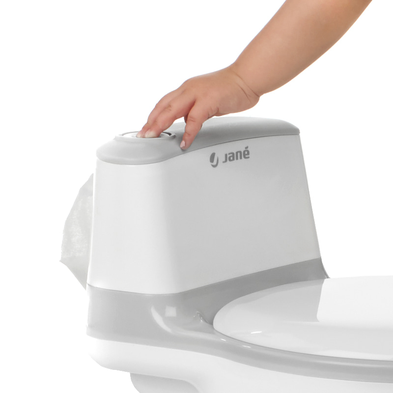 С дизайн, който имитира истинска тоалетна, това гърненце прави приучването към тоалетна забавно и безопасно преживяване. Включва капак с панта, звук имитиращ пускане на вода и неплъзгаща се основа за повече сигурност. Разполага и с отделение в резервоара за мокри кърпички или тоалетна хартия, както и с подвижна купичка, устойчива на разпръскване, която улеснява почистването.