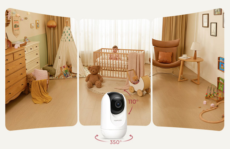 Камерата се завърта на 350° и се накланя на 110°, за да обхване всеки ъгъл в стаята.