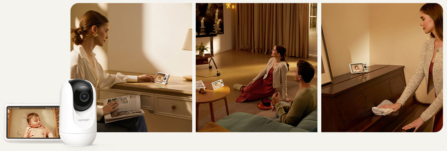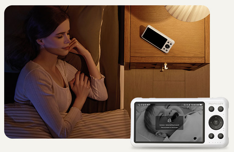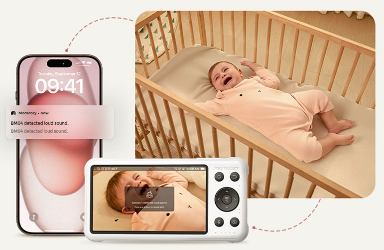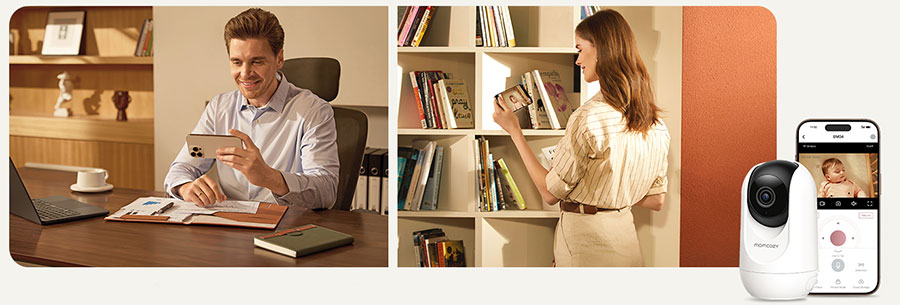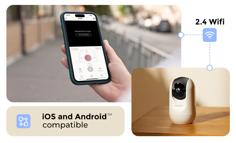 Използвайте включеното родителско устройство BM04 за надеждно наблюдение без Wi-Fi у дома или гледайте видеопотока в реално време чрез приложението Momcozy, когато сте в движение.