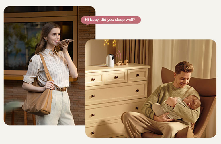 Извън дома сте? Използвайте приложението, за да говорите на бебето и да го успокоите веднага с гласа си.