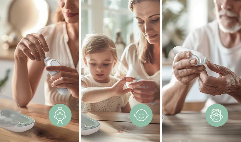 Бебешката електрическа пила за нокти Momcozy включва 4 резервни накрайника за бебета и 3 накрайника за грижа за възрастни. Разполага с 4 степени на скорост на пилене, подходяща както за новородени и бебета от 0 до 36 месеца, така и за всички членове на семейството.