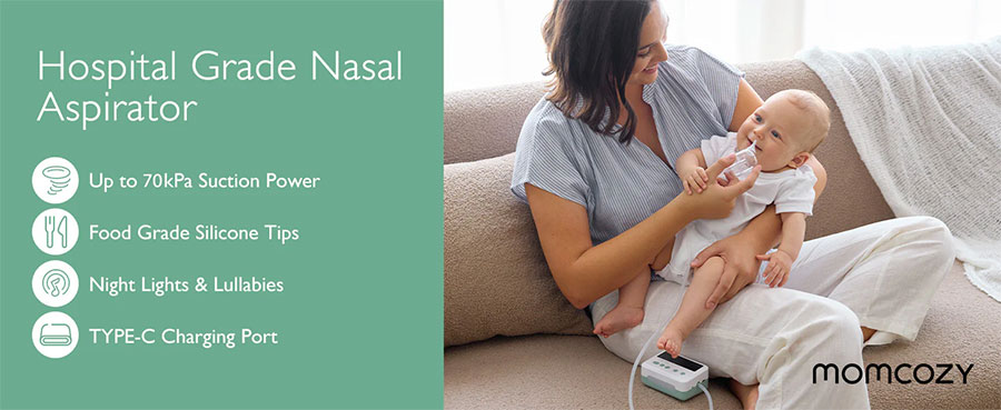 Електрическият аспиратор за нос Momcozy е практично решение за облекчаване на запушения нос при деца. Той е презареждаем, лесен за използване и нежно, но ефективно отстранява секретите, помагайки на детето да диша по-леко и спокойно.