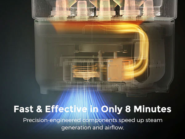 Мощната пара унищожава 99,9% от често срещаните бактерии само за 8 минути.