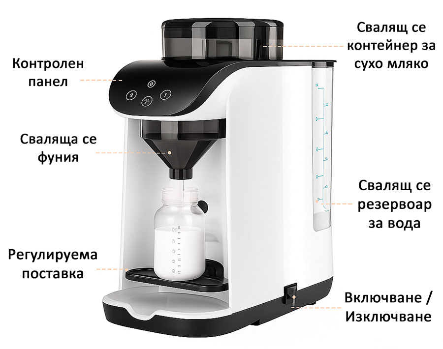- Висока съвместимост: Поддържа всички видове бутилки и марки мляко на прах.