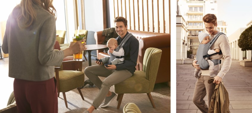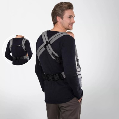 Удобни подплатени презрамки, с възможност за кръстосано или паралелно носене, за оптимално разпределение на теглото. Подплатеният колан за кръста предлага удобно носене благодарение на възможността за регулиране на ширината.
