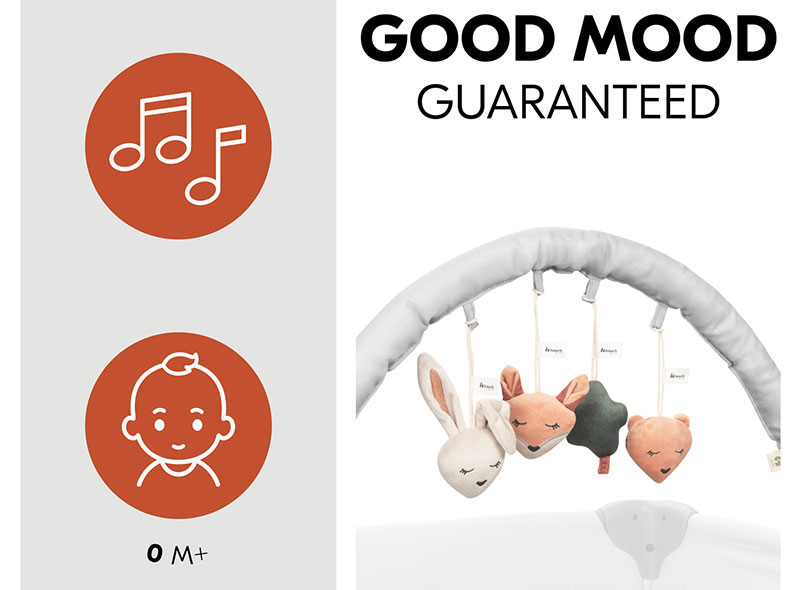 С тази арка със симпатични животинки, вашето дете ще се чувства като у дома дори когато пътувате или сте на гости. Играчката е чудесно допълнение към кошари за пътуване hauck с ширина до 60 см.