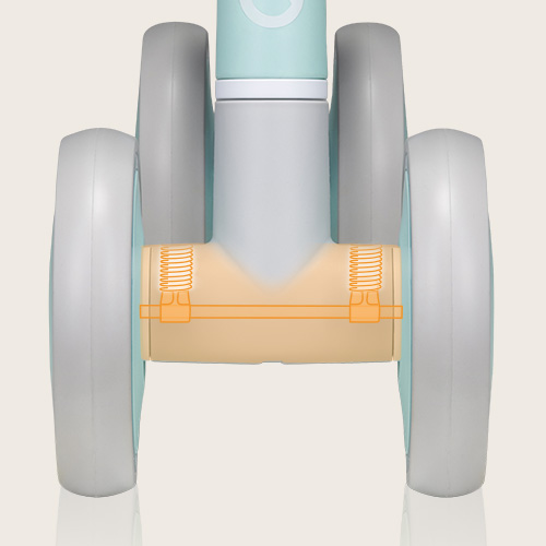 Четири гуми и здрава рамка осигуряват отлична стабилност, улесняват управлението и предпазват от преобръщане по време на игра.