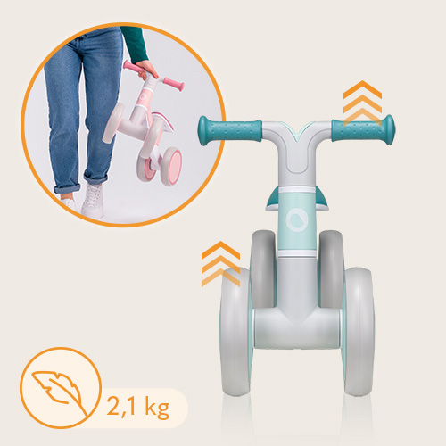 С тегло само 2,1 кг, Lionelo Villy е лесен за носене – можете без усилие да го преместите, ако детето се умори или срещне препятствие.