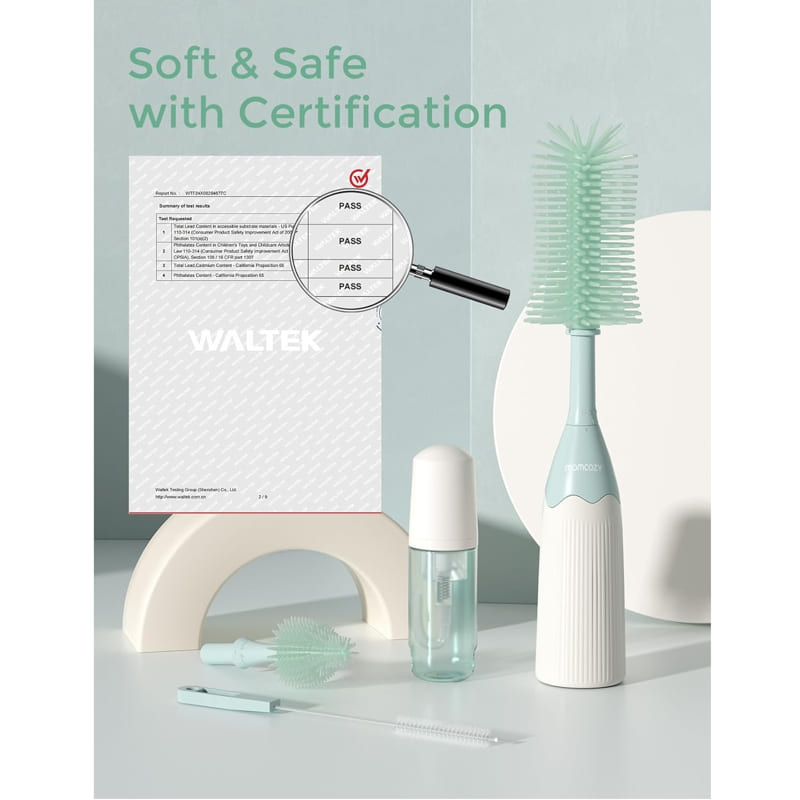 Комплект за почистване на бебешки шишета Momcozy, идеален за родители в движение. Здравият силиконов материал от хранителен клас осигурява цялостно 360° почистване на шишета и чаши, превръщайки комплекта в незаменим помощник по време на растежа на бебето. Гарантира безопасна и чиста среда за вашето дете. Подарете удобство и чистота с този основен комплект за почистване на бебешки шишета.