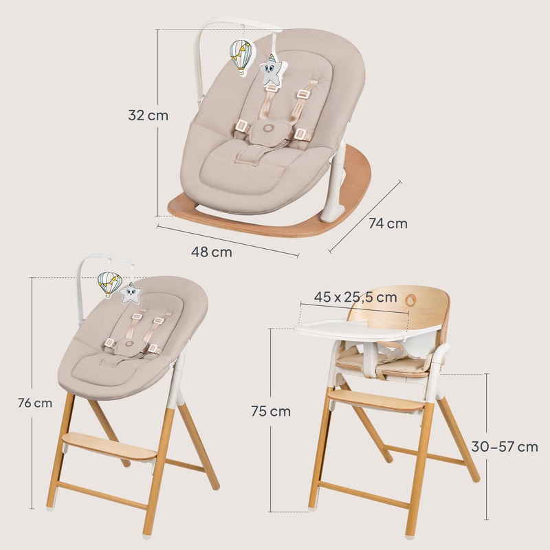 Lionelo Celia Set е функционален комплект 4 в 1, който съчетава шезлонг, повдигнат шезлонг, стол за хранене за бебе и стол за по-голямо дете или възрастен. Използвайте всеки елемент според нуждите – на различни етапи от развитието или в различни моменти от деня. Адаптира се към ежедневието, без да е необходимо да сменяте мебелите.