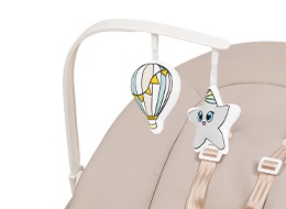 Включеният гриф с играчки задържа вниманието на бебето по време на използване на шезлонга.