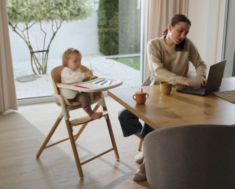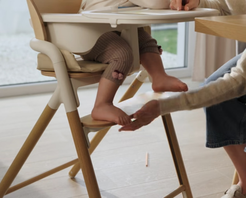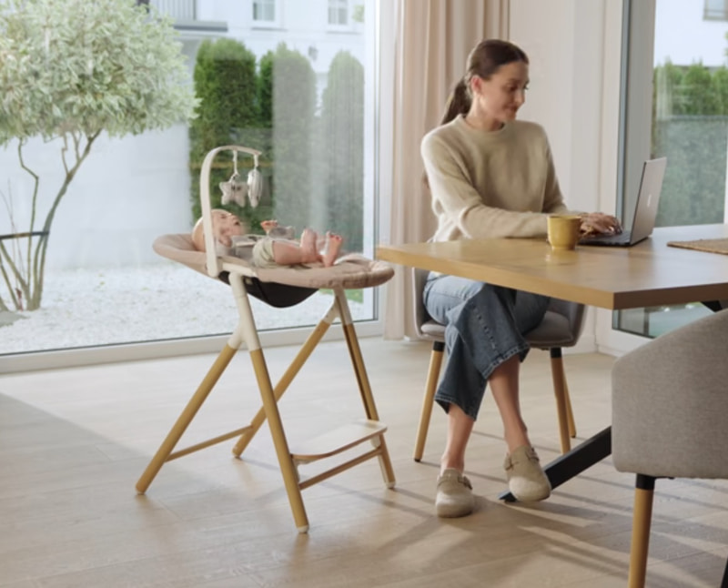 Можете да свържете седалката на шезлонга с основата на стола, за да създадете повдигнат шезлонг, разположен по-близо до масата или плота. Така бебето е на вашата височина и винаги го държите под око. Регулируемата в 2 позиции облегалка позволява оптимално удобство през целия ден.
