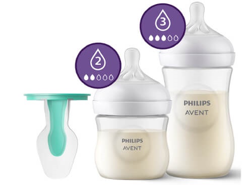 Уникалният накрайник на биберона Natural Response със "старт-стоп технология", така че млякото не капе и предотвратява изтичането, когато бебето не се храни.