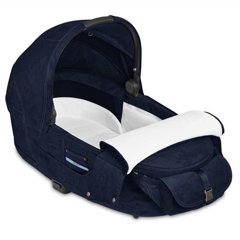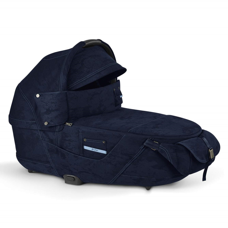 Съчетавайки висша мода с изключителен комфорт, кошът за новородено Cybex Priam Lux от колекцията Rebellious в цвят Luxury Denim Blue е истинско изявление на стил и функционалност. Създаден за взискателни родители, които не правят компромис с качеството и визията, този модел предлага безопасно, просторно и уютно място за бебето още от първия ден. Наситеният тъмносин деним с уникален текстилен дизайн и метални акценти подчертава премиум характера на продукта, вдъхновен от модния подиум.