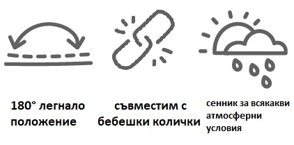 Пълно легнало положение 180° – позицията, най-подходяща за сън, дишане и развитие на гръбначния стълб, създава уютна и ергономична среда за новороденото, одобрена за нощен сън