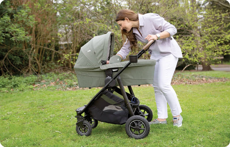 Моделът е съвместим с повечето бебешки колички Joie и предлага пълно легнало положение, което позволява разходки с бебето още от първите дни