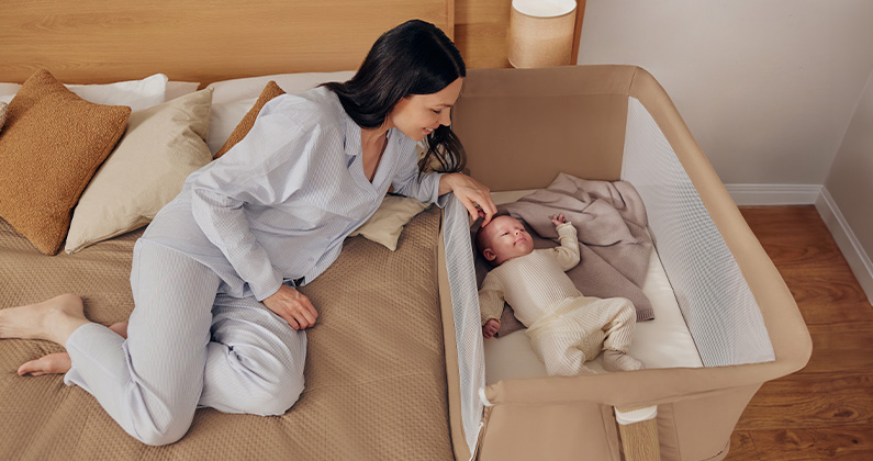 Когато искате да почивате до детето си, просто разкопчайте страничната преграда и използвайте включените монтажни ленти, за да създадете стабилна спалня с лесен достъп до вашето мъниче. Дължината на краката може да се регулира за да отговарят на височината на леглото на родителите за оптимално прилягане.