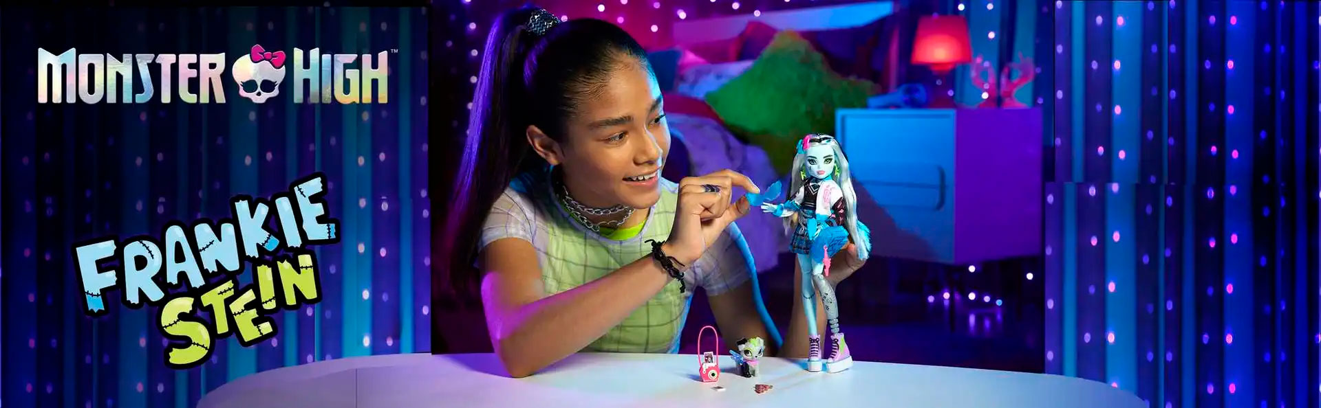 Училището отново започва, а призраците от Monster High се появяват в стил на крясък! Куклата Frankie Stein се разхожда по коридорите на Monster High в невероятен наелектризиращ тоалет, включващ карирана пола, блуза с щампа на светкавица и жилетка с детайли от шевове. Уникално-страхотната й визия е допълнена с масивни маратонки на платформа, creeperific аксесоари и протезен крак с детайли.