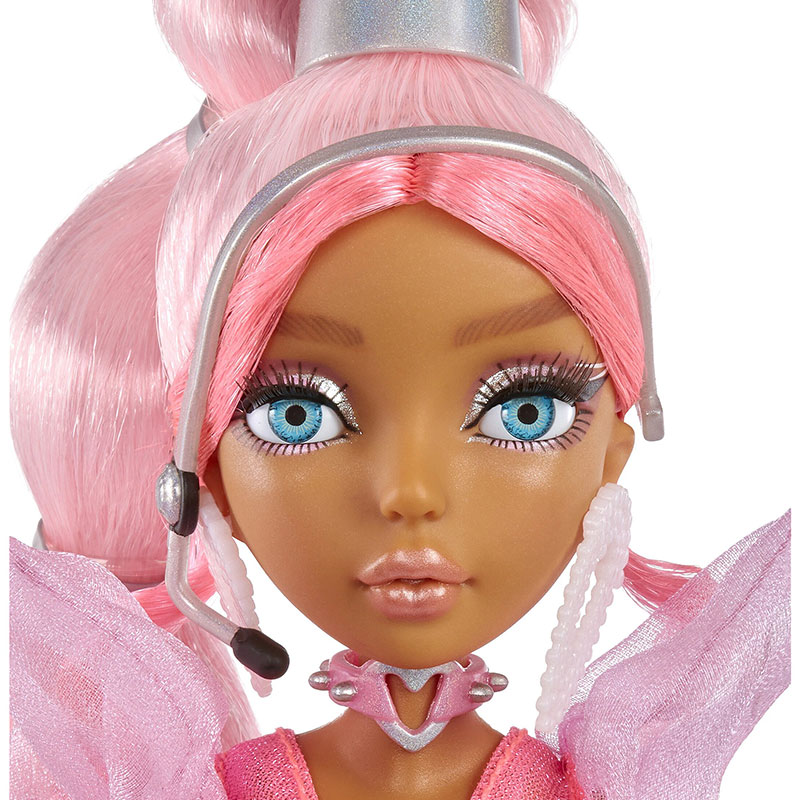 Harmonique е изключително стилна с модерно розово горнище с прозрачни ръкави и метален колан. Тоалетът ѝ е допълен с чанта, огърлица, обеци, пръстен и слушалка с микрофон. Куклата има красива светлорозова премиум коса, оформена в опашка с мехурчета с два кичура в цвят фуксия.