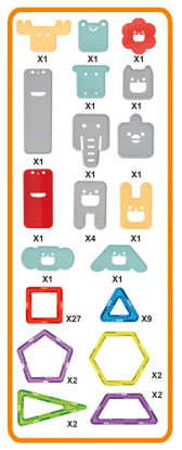 Образователен детски магнитен конструктор, с който малчуганите ще се запознаят с различни геометрични фигури и животни.