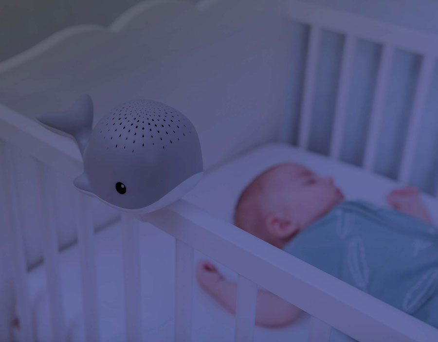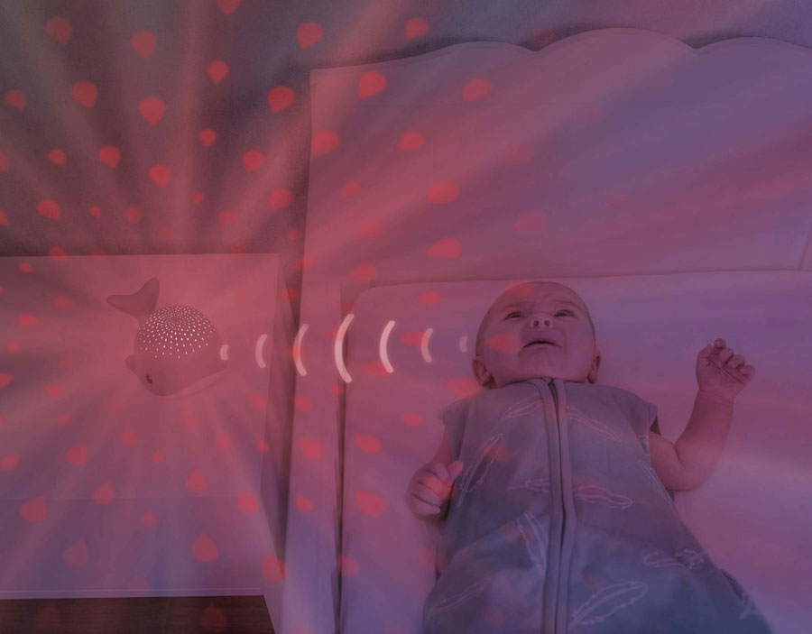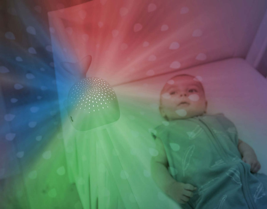 Wally прожектира водни капки върху тавана в различни цветове, докато възпроизвежда успокояващи звуци като сърдечен ритъм, шум на океана или релакс музика. Може да се прикрепи към кошарата с велкро лента.