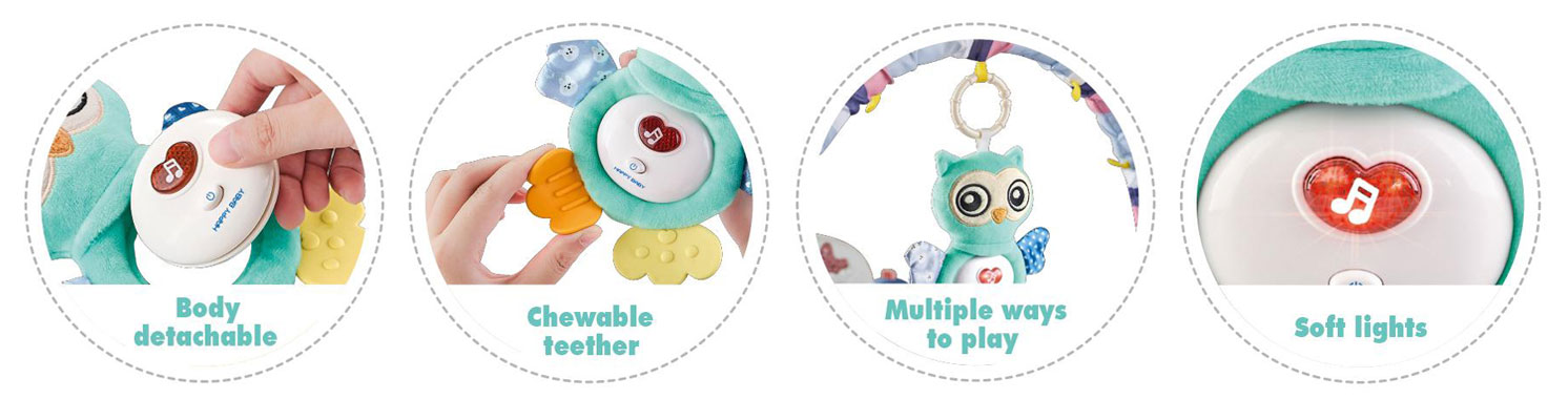 Сладка музикална бебешка играчка с нежна светлинка, която ще забавлява, успокоява и унася в сладки сънища Вашето бебче.