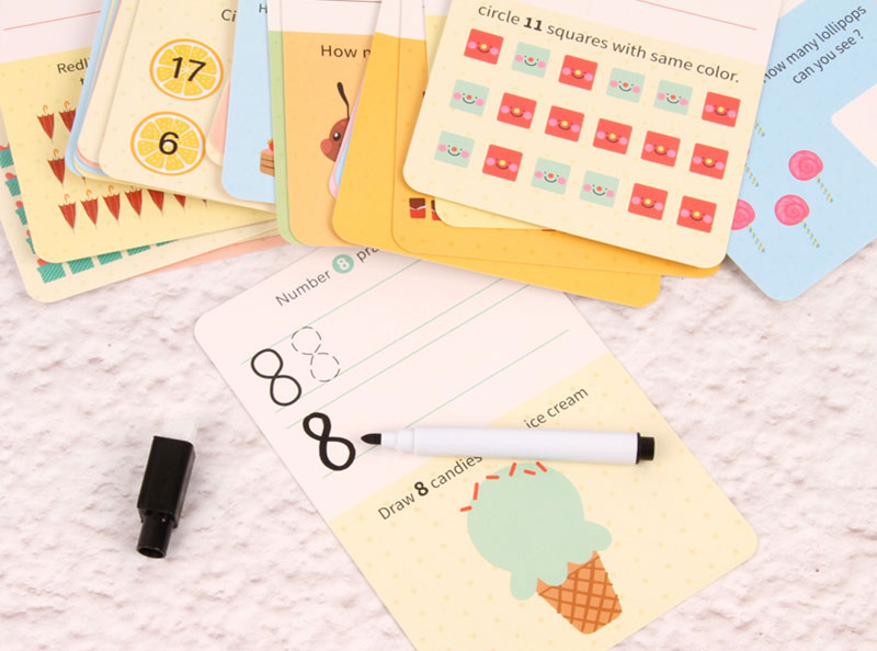 Включени са 26 карти с числа и забавни задачки, които ще подпомогнат детето да учи докато се забавлява. Като следват пунктираните линии, децата могат да подобрят уменията си за писане на ръка и да придобият увереност в точното писане на числата.