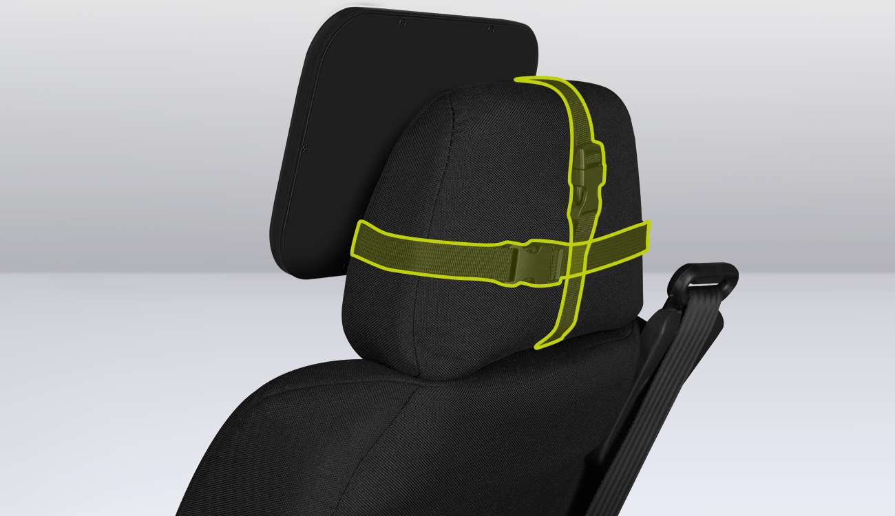 лесно се монтира към облегалката за глава във всяка кола. Регулируемите презрамки