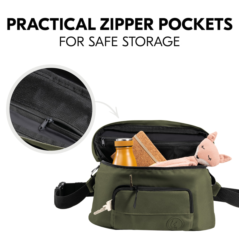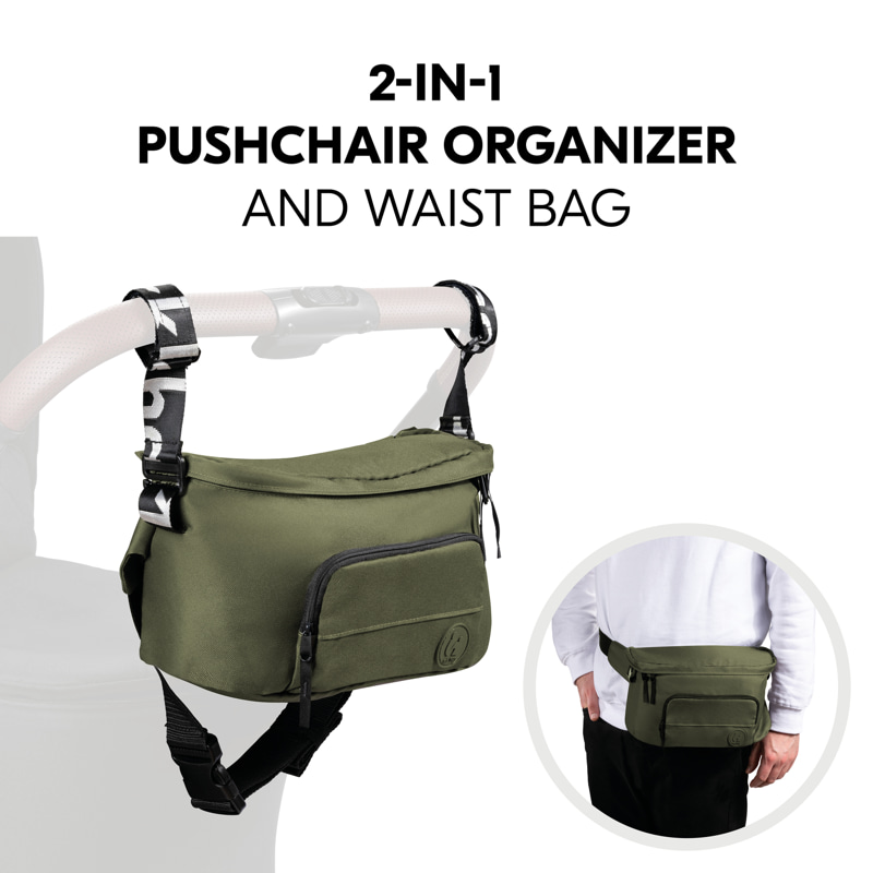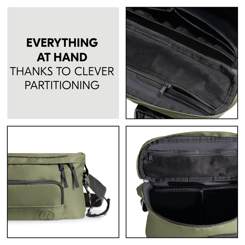 Тази чанта е задължителна, ако често пътувате с детска количка или бъги. Всички важни вещи са лесно достъпни, а чантата може да се прикрепи към количката или да се носи около кръста.