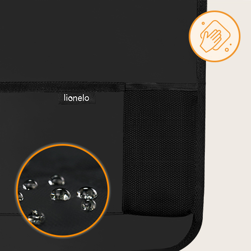Lionelo SeatOrganizer е автомобилен органайзер, който се закача на гърба на предната седалка. Той забавлява детето ви по време на пътуване, спомага за поддържането на ред в колата и предпазва седалката от замърсявания, като например следи от детски обувки. Органайзерът разполага с 5 джоба с различни размери, които ви позволяват да подредите всичко необходимо. Един от джобовете е подходящ за таблет, на който детето може да гледа анимации. Освен това осигурява лесен достъп до закуски или напитки по време на пътуването.