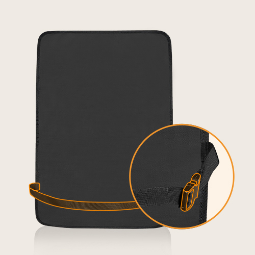 Органайзерът се прикрепя лесно с помощта на здрави ленти, които се фиксират със закопчалка. Универсалният му дизайн гарантира съвместимост с повечето модели автомобилни седалки.