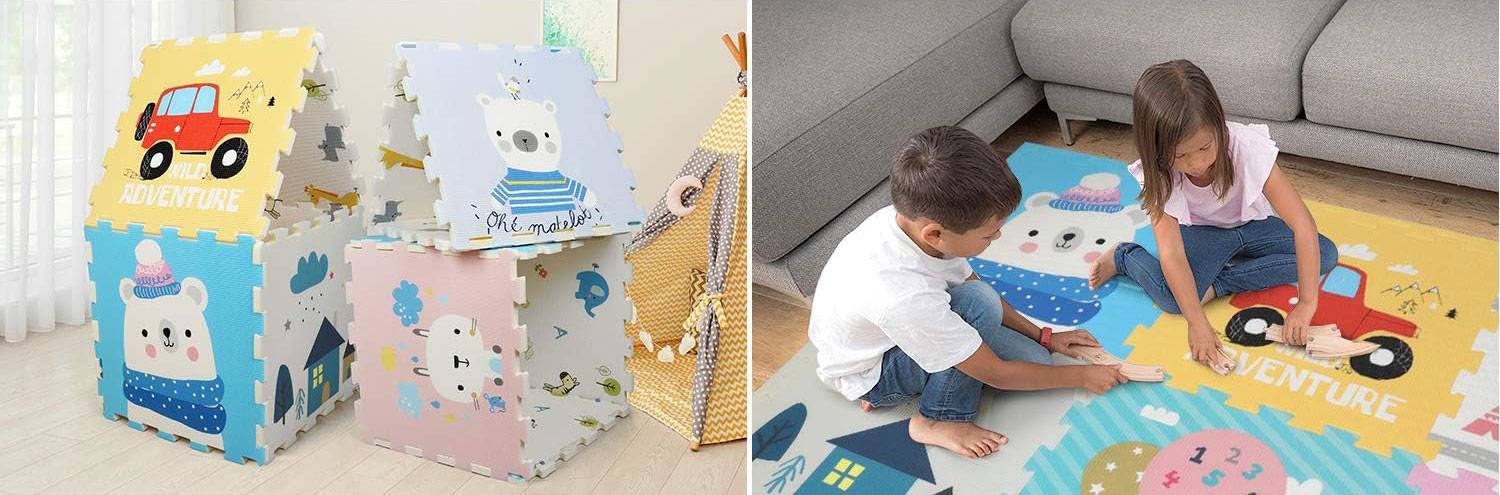 Лесно се почиства и е водоустойчив, което го прави идеален за ежедневна употреба. Чудесен за създаване на безопасна среда за игри на вашето дете, изолирайки от студ и осигурявайки допълнителна защита от падания или удари.