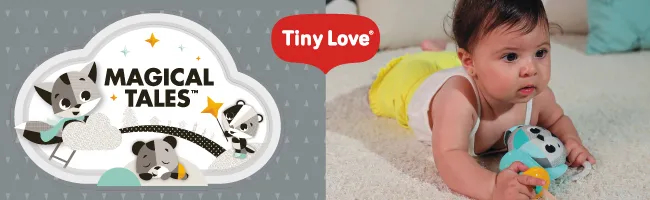 Подаръчният комплект Tiny Love Magical Tales Black & White е създаден да стимулира развитието на бебето още от първия ден. Контрастният черно-бял дизайн подпомага зрителното възприятие на новородените, а включените играчки развиват сетивата, фината моторика, когнитивните и емоционалните умения.