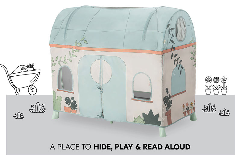 Под покривалото с красиви мотиви вашето дете мечтае за един различен свят. Идеално място за скриване, за ролева игра или за четене.